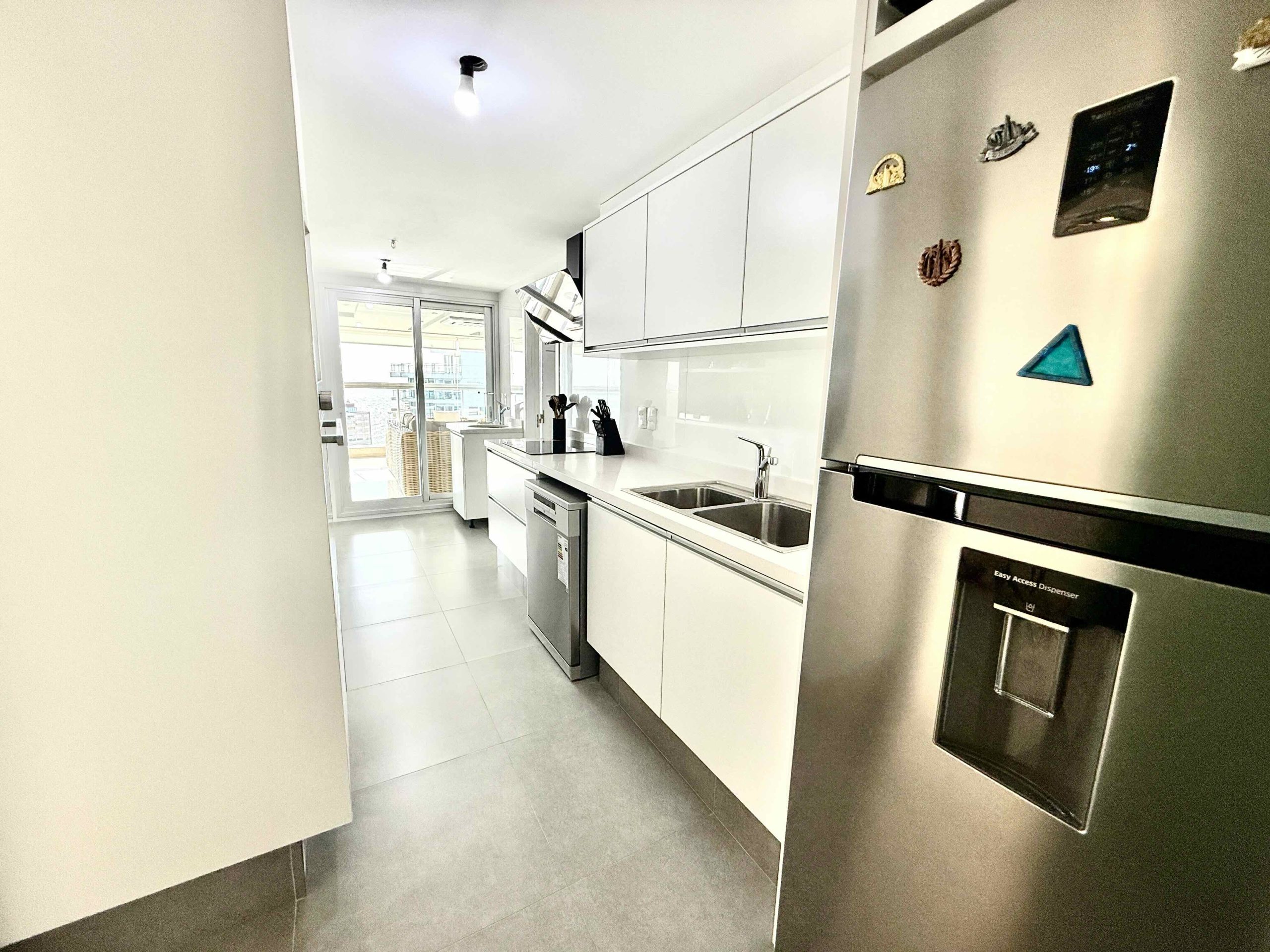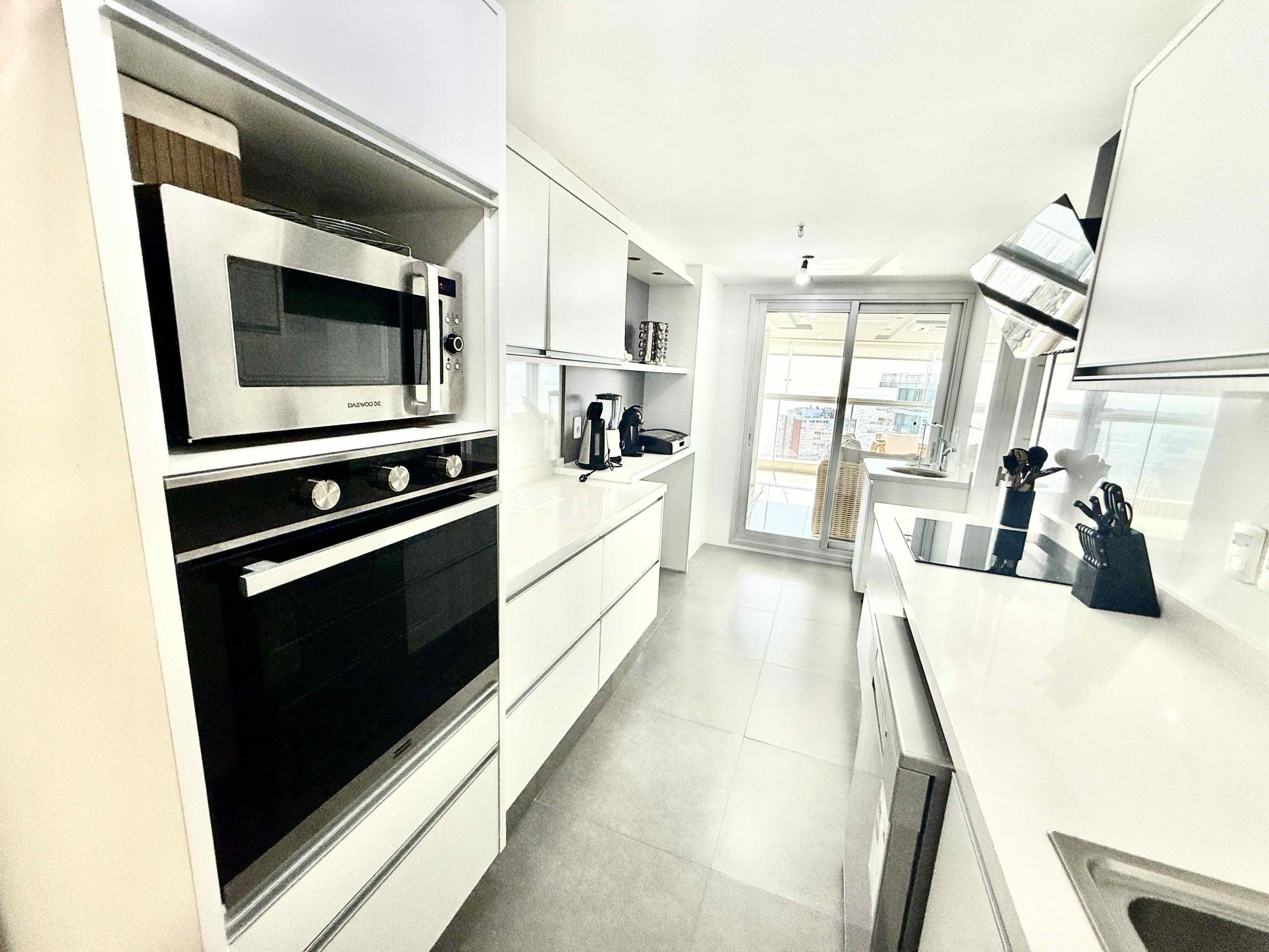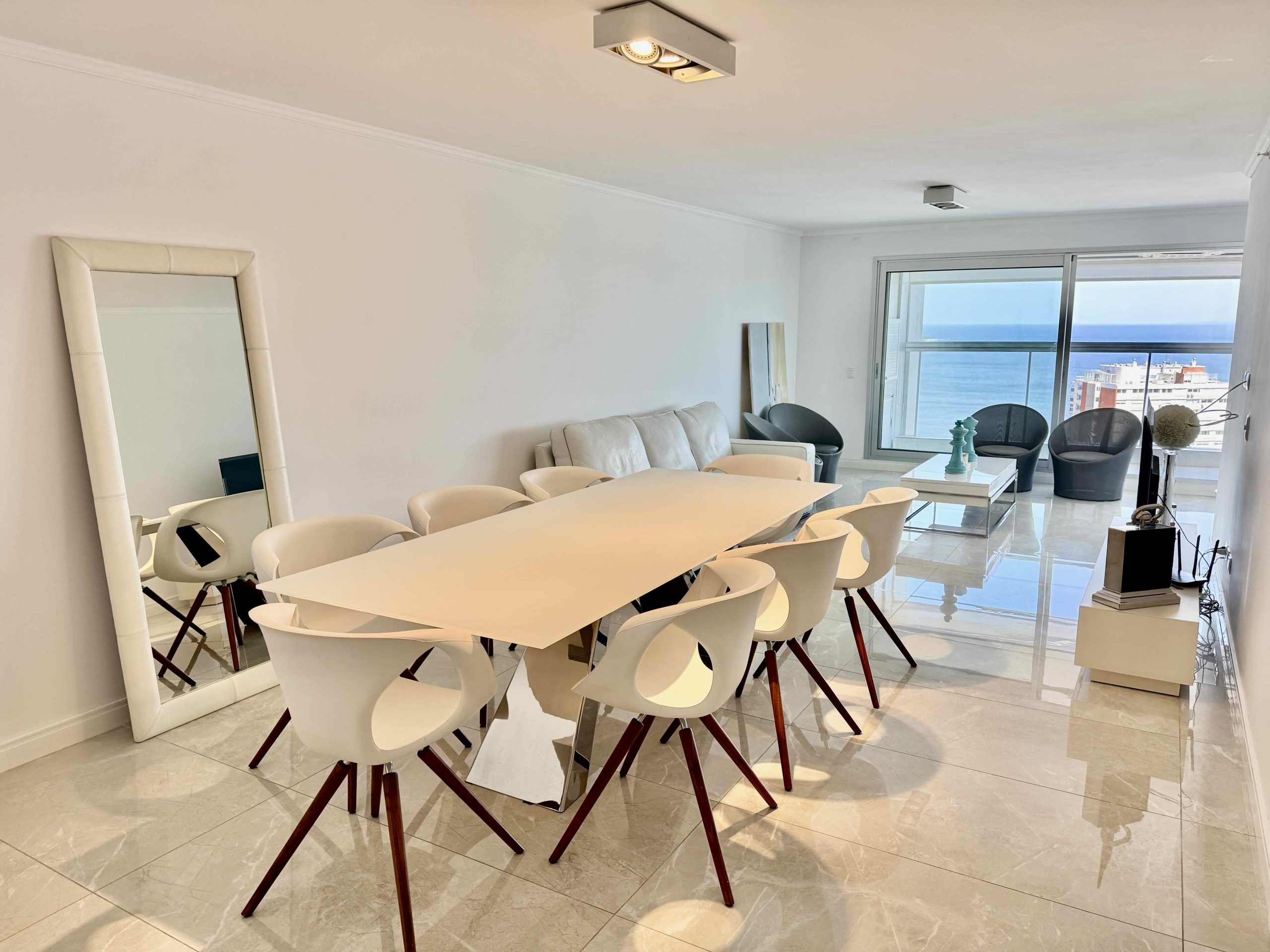 El apartamento ofrece un gran living comedor con vista directa al mar, salida al balcón de 30 m² cerrado con parrillero propio, y una distribución ideal para vivir todo el año o disfrutar temporadas con máximo confort. Incluye toilette social, cocina moderna al frente con vista al mar y conexión a la dependencia de servicio con baño, que también puede utilizarse como escritorio u office.
