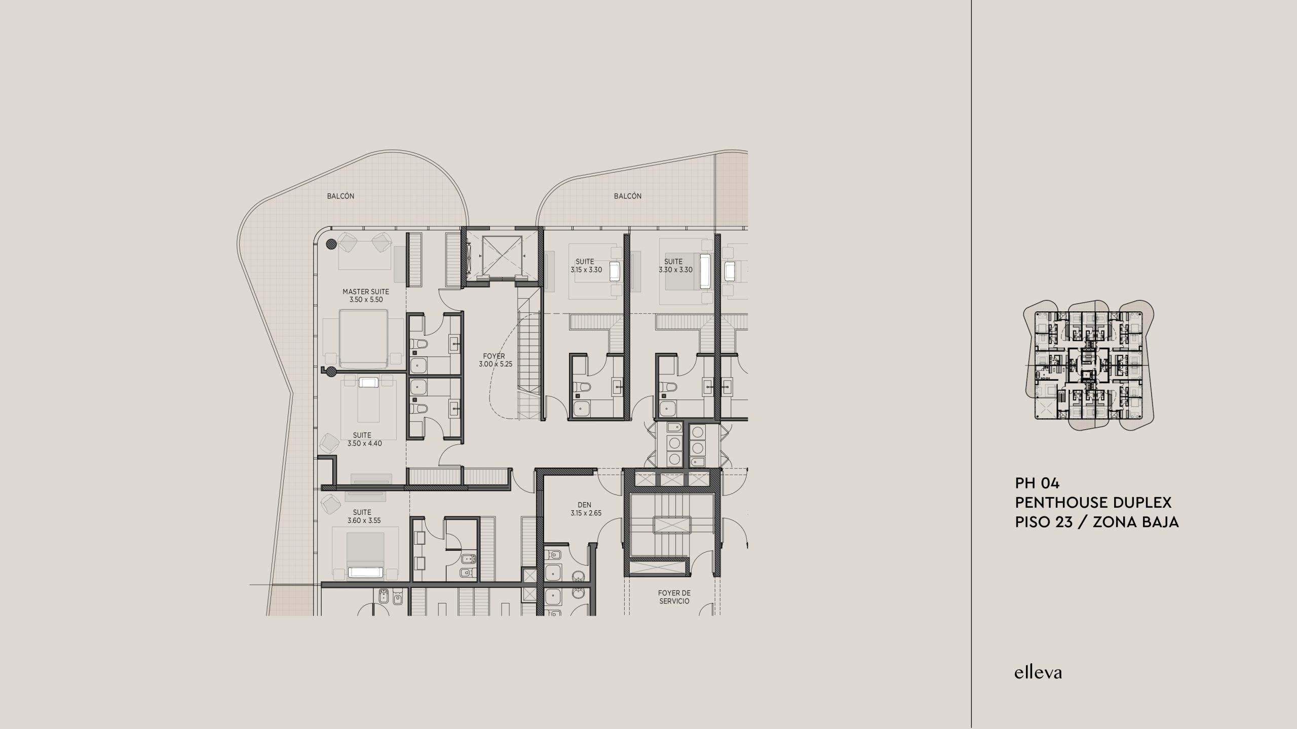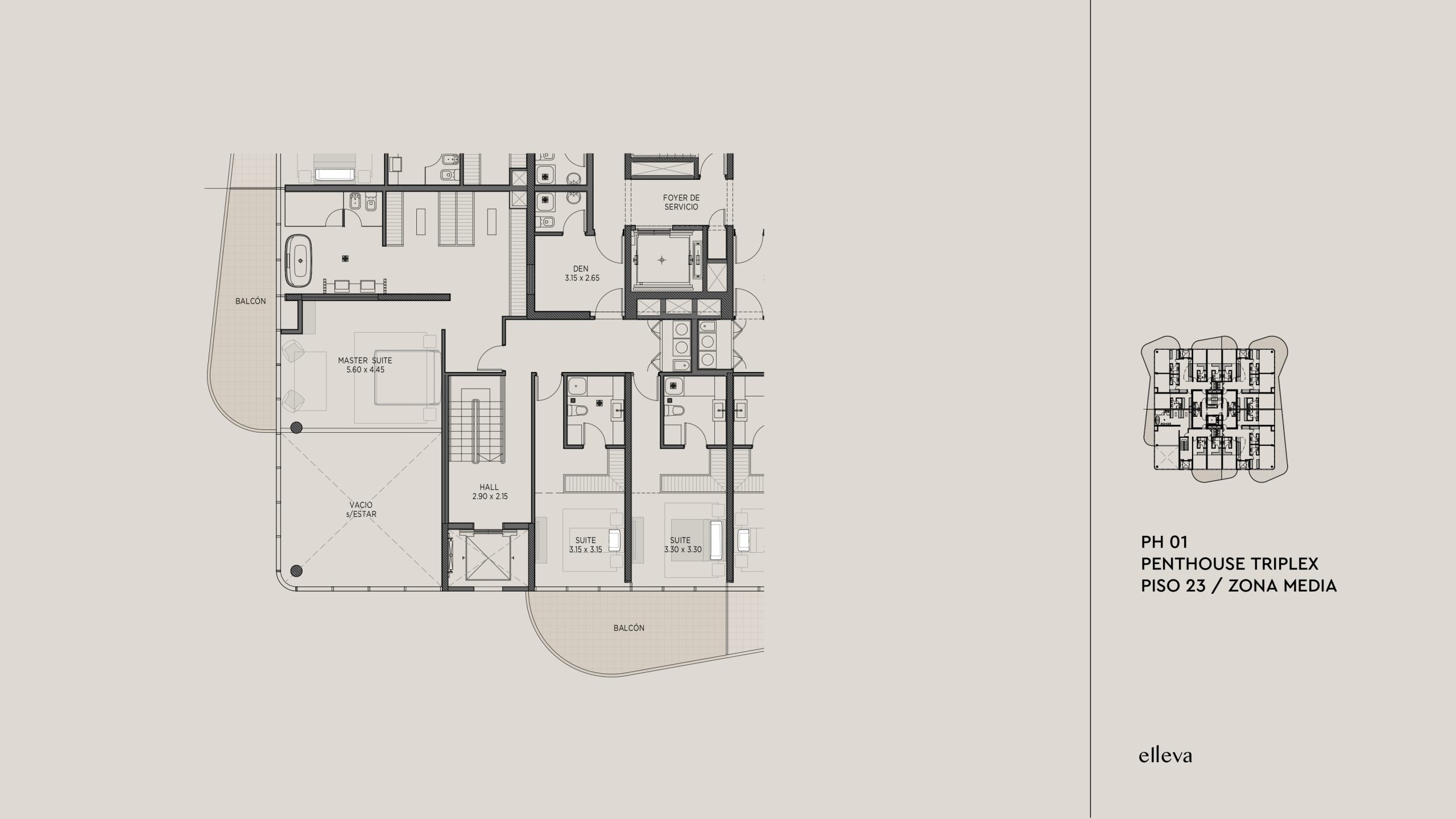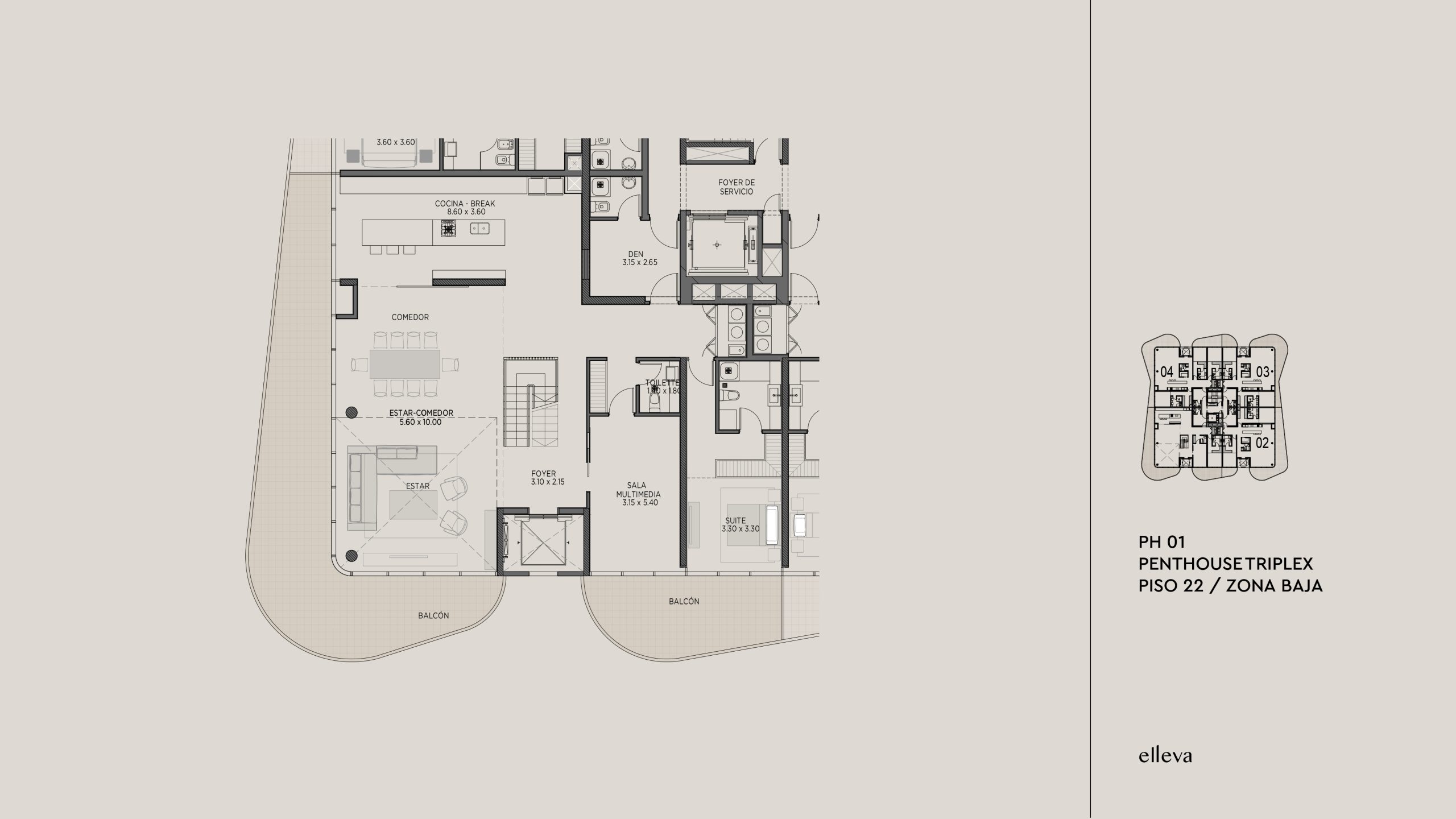 Las opciones residenciales incluyen plantas unificadas, dúplex, tríplex y penthouses con piscina privada. Todas las unidades cuentan con generosos metrajes, alturas de hasta tres metros de piso a techo y terminaciones de primer nivel que responden a las más altas exigencias. La sensación de confort se complementa con ascensores panorámicos que ofrecen acceso directo a cada unidad, transformando el simple hecho de llegar a casa en una experiencia visual inolvidable.