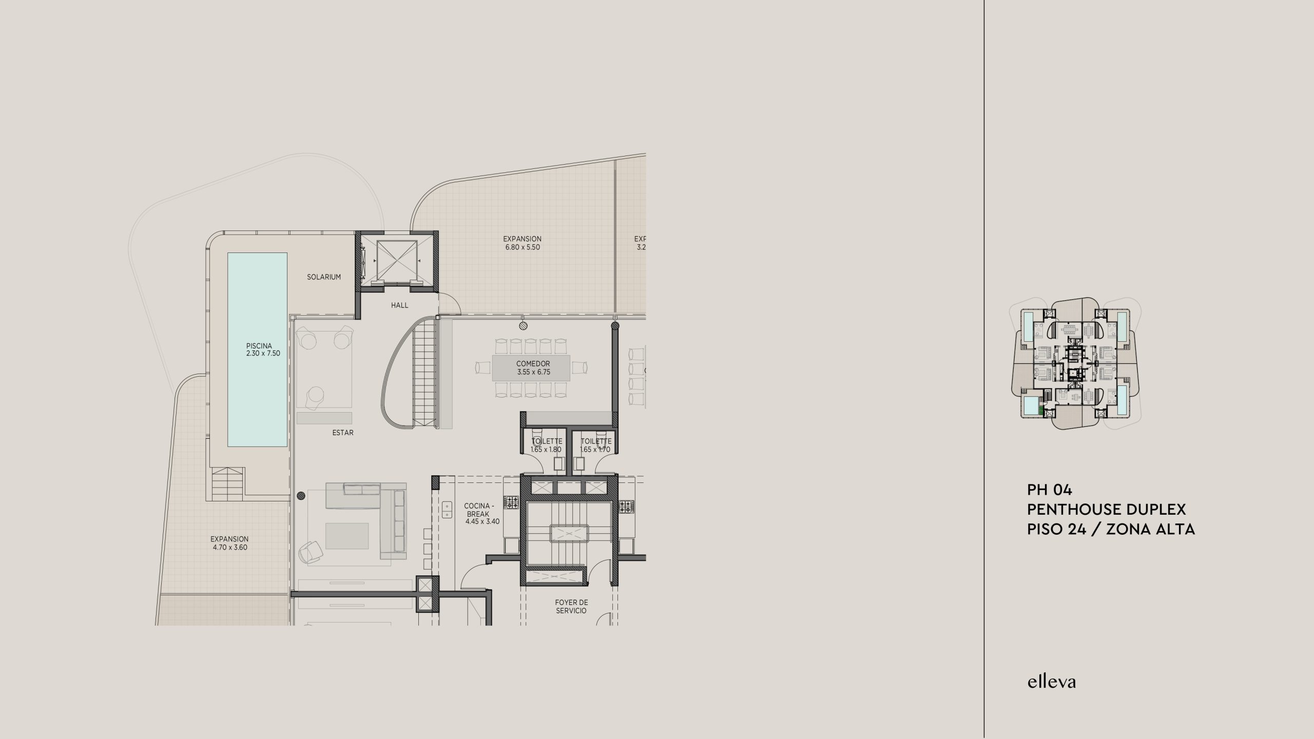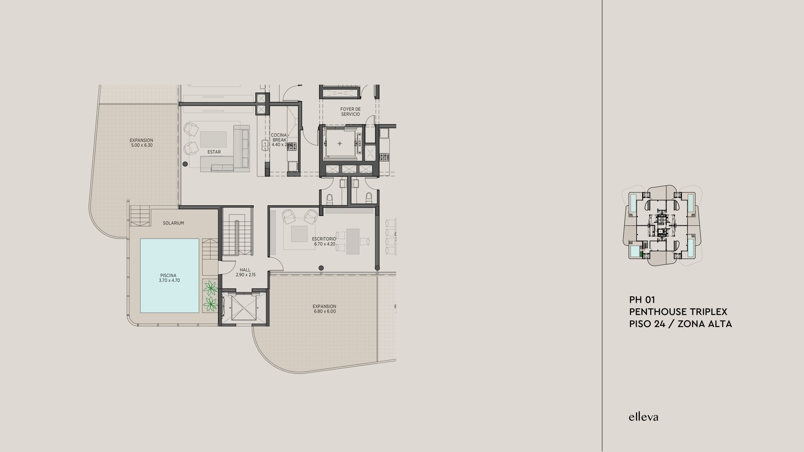 Elleva también brinda un paquete de servicios y amenities excepcionales, diseñados para el bienestar y el entretenimiento de toda la familia. Entre ellos destacan piscinas in/out de 30 metros, gimnasio de última generación, spa con saunas, clases de yoga, cine, salón de eventos, restaurante y un Kids Club en un piso completo de la torre, especialmente creado para que los más pequeños disfruten en un ambiente seguro y divertido.